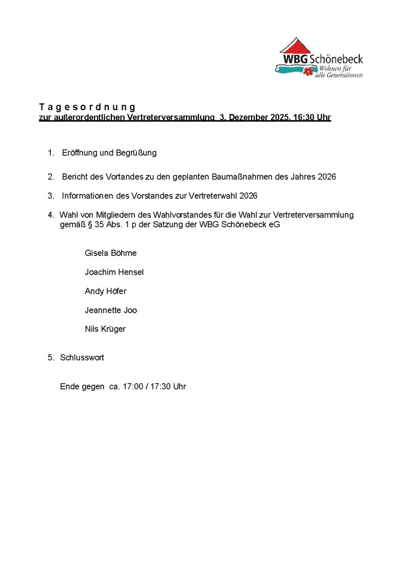 zur außerordentlichen Vertreterversammlung 3. Dezember 2025, 16:30 Uhr