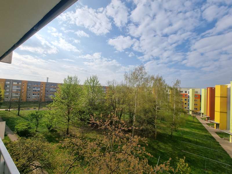 Diese Wohnung steht am Rande eines Wohnensembles. Von der 6 m breiten Loggia hat man selbst vom Erdgeschoss eine hervorragende Weitsicht. Auf der Freifläche befinden sich Kinderspielgelegenheiten und Sitzmöglichkeiten im Grünen. Fußläufig ist man in 4 Minuten am S-Bahn-Haltepunkt, von dem aus man in 16 Minuten das Zentrum der Landeshauptstadt Magdeburg erreicht. In der Nähe befinden sich Supermärkte, Arztpraxen, Sparkasse und vieles mehr, was das urbane Leben angenehmer macht.