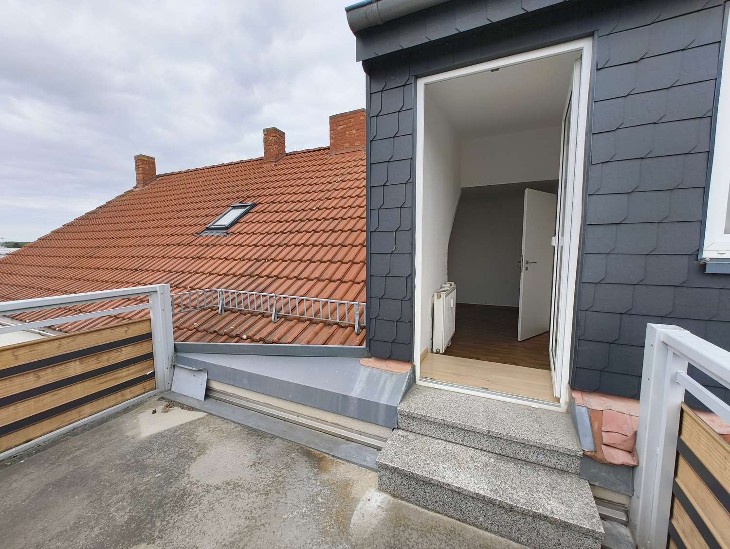gefliestes lichtdurchflutetes Tageslichtbad, Balkon