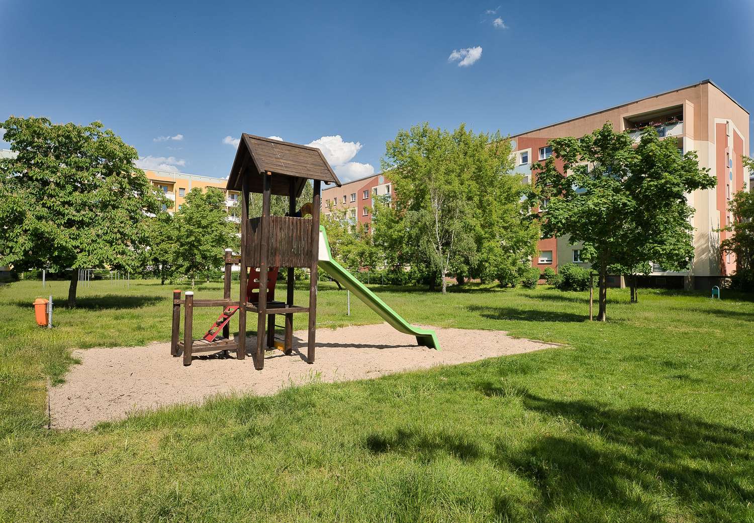 Diese Wohnung steht am Rande eines Wohnensembles. Auf der Freifläche befinden sich Kinderspielgelegenheiten und Sitzmöglichkeiten im Grünen. Fußläufig ist man in 4 Minuten am S-Bahn-Haltepunkt, von dem aus man in 16 Minuten das Zentrum der Landeshauptstadt Magdeburg erreicht. In der Nähe befinden sich Supermärkte, Arztpraxen, Sparkasse und vieles mehr, was das urbane Leben angenehmer macht.