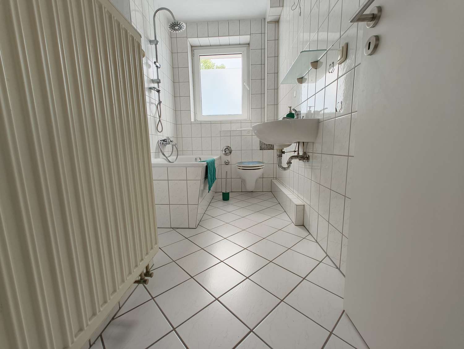 gefliestes Bad mit Badewanne