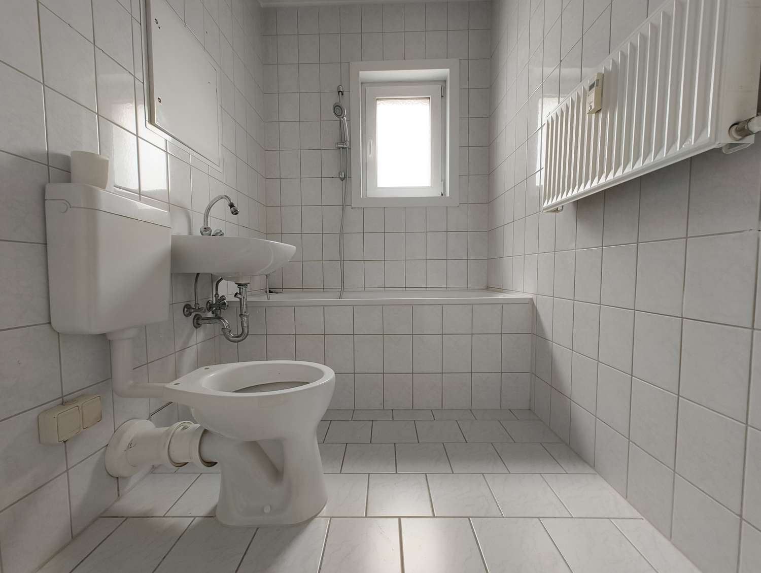 gefliestes Bad mit Badewanne